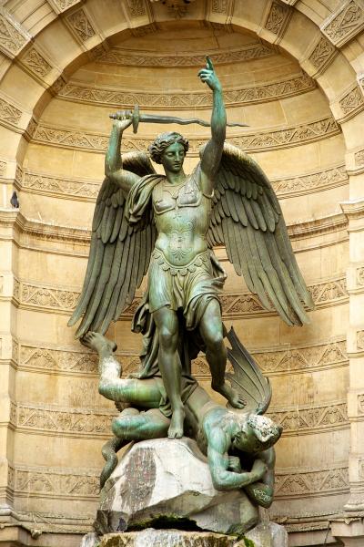 Heiliger Erzengel Michael, verteidige uns im Kampfe! Gegen die Bosheit und die Nachstellungen des Teufels sei unser Schutz! Gott gebiete ihm, so bitten wir flehentlich! Du aber, Fürst der himmlischen Heerscharen, stürze Satan und die anderen bösen Geister, die zum Verderben der Seelen die Welt durchziehen, in der Kraft Gottes hinab in die Hölle! Amen.