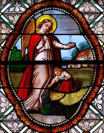 Ich grüße dich, mein heiliger Schutzengel, Bote des Königs der Herrlichkeit und Vollstrecker seines Willens: Reinige - ich bitte dich - meine Gebete, Handlungen und Wünsche, und bringe sie dar vor dem ehrfurchtgebietenden Gott als duftenden Weihrauch.